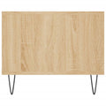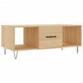 Add a touch of elegance to your living room with this stylish coffee table. Durable material: The engineered wood is of exceptional quality with smooth surface and also features strength, stability and resistance to moisture.Ample storage space: This side table has 3 compartments, offering ample storage space to keep your essentials well-organised and within reach.Sturdy tabletop: The sturdy tabletop of the sofa table is perfect for placing your drinks, food and other decorative items.Practical door: Keep your space clutter-free by hiding small essentials behind the door of the living room table.Iron legs: The iron legs add a calm style to your interior while ensuring stability.