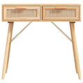 Add a Scandinavian touch to your room with this console table! It makes a practical and decorative addition to your home. Durable material: The engineered wood is of exceptional quality with smooth surface and also features strength, stability and resistance to moisture.Ample storage space: Equipped with 2 drawers, the table offers ample storage space for keeping various daily essentials well organised and within easy reach. Also, the nature rattan weaving design adds extra beauty.Solid pinewood feet: The wooden feet give the hall table a natural and pleasant look while ensuring stability. It can blend well with any interior decor.Sturdy top: The side table has a sturdy top, which is perfect for placing potted plants, framed photos, and other decorative items. Note:Each product comes with an assembly manual in the box for easy assembly. Warning:In order to prevent overturning, this product must be used with the wall attachment device provided.