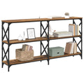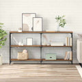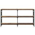 This Engineered Wood Console Table combines rustic charm with functional design, perfect for enhancing any living room. Ideal for displaying decorative items while offering ample storage, it features a smooth, opaque rectangular surface and board shelves made from engineered wood. Its sturdy metal frame and post legs provide reliable support, making it a versatile addition to hallways, entryways, or living areas. Materials: The console table is crafted from engineered wood, known for its strength and smooth finish. It resists stains, ensuring the table retains its beauty even with regular use. The opaque surface complements various interior styles, adding a touch of rustic elegance to your living space. Included Components: The table features board shelves that offer straightforward storage options. These shelves are made from engineered wood, providing a basic yet reliable shelving solution for your items. Paired with steel post legs, the table ensures robustness and stable support. Features /Function /Design: Equipped with adjustable feet, this console table accommodates uneven surfaces, ensuring stability. Its rectangular shape and smooth texture make it a fitting choice for a narrow hallway or a spacious living room, blending effortlessly with existing décor. Recommended Uses: Perfect for living rooms, hallways, and entryways, the console table offers storage and display space. Use it to showcase family photos, decorative items, or organize everyday essentials, making it an adaptable piece for household or office settings. Care &Maintenance: Maintain its condition by wiping with a damp cloth. Avoid using abrasive cleaners to preserve its smooth finish and durability. Regular care ensures the console table stays a longstanding element of your home décor.