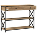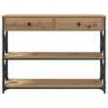 This industrial console table really stands out in any living area, mixing style with practicality. It’s got a rectangular shape and is made from an innovative blend of metal and engineered wood, giving off that raw, industrial charm you see in trendy lofts or refurbed warehouses. Just looking at it, you can imagine how it would match the rugged vibe of an industrial home or add a surprising modern twist to a more classic decor. It's simple yet bold, making it a flexible piece that works for both decoration and daily use, whether it’s in the hall or the lounge. Top-Notch Materials: Made with a mix of engineered wood and a tough metal frame, this console table looks good and stands strong. The materials are picked for their durability and are resistant to wear, so it stays looking nice even in busy spots. Loads of Storage: With board-type shelves and an engineered wood drawer, this table gives you plenty of space to keep your things tidy. It can easily serve as a stylish display piece or a handy storage solution. Industrial Chic: With its black iron legs and frame, this console table adds an urban touch. It fits in with lots of different styles, bringing a raw, casual charm that anyone into industrial decor will love. Free-Standing Ease: This table is made to be free-standing, so you can place it anywhere in the room. It fits nicely against walls, allowing for custom space layouts no matter if your area is small or big. Care & Assembly: Keep it in top shape with easy care tips, like avoiding harsh chemicals. You’ll need a friend and a screwdriver to put it together, but it’s straightforward if you follow the instructions from the manufacturer.