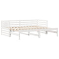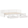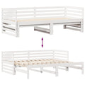 This 2-in-1 daybed with trundle, serving as both a sofa and bed, makes a practical and eye-catching addition to your living room or bedroom. Stable and long-lasting frame: Solid pinewood is known for its strength and durability. Its straight grains and distinctive knots contribute to its rustic charm.Versatile daybed: The sofa bed functions as a sofa during the day and easily converts into a double bed at night by pulling out the trundle, providing a convenient solution for hosting guests and maximising space.Slats for optimal support: The couch bed is complete with slats to offer essential support and breathability to your mattress.Ample storage space: This guest bed has two drawers that provide ample space for storing your clothes, socks, toys, cushions, etc. Good to know:Mattresses are not included with this bed. We do offer a various selection of mattresses. You can check our shop for matching mattresses.