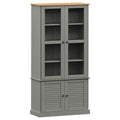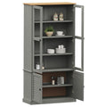 This wooden glass display cabinet provides an ideal solution for organising your collections and will add a touch of rustic charm to your interior. Solid pine wood: Solid pine wood is a beautiful natural material. Pine wood has a straight grain, and the knots give the material its signature, rustic look. Made of solid pine wood, the display cabinet is durable and sturdy.Ample storage space: Equipped with shelves, this cabinet with glass doors provides ample space for keeping your collection of cups, dishes, and small decorative items in good order.Easy to maintain: The glass cabinet is easy to clean with a damp cloth and requires less maintenance.Metal knobs: The display cabinet with glass doors comes with metal knobs that make it easy to open and close the shelf cabinet while adding to the extra beauty. Warning:To prevent it being overturned, this product must be used with the provided wall attachment device.