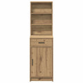 This modern highboard is a fab storage solution for any living space. It’s designed with simplicity and function in mind, showcasing a stylish rectangular shape that fits right in with both modern and traditional settings. With clean lines and a beautiful back, it offers a seamless look that’s perfect for those who love understated elegance. Ideal for anyone who appreciates quality, it’s perfect for showing off your favourite décor or stashing everyday essentials. Materials: This highboard is made entirely from engineered wood, which is super durable and resistant to wear and tear. The brown finish adds a nice warmth, making it a good-looking addition to any room. Its high abrasion resistance means it’ll keep its classy look for ages, offering beauty and strength for a stress-free life. Included Components: With board shelves that can hold all sorts of items, the highboard comes with hinge doors and a drawer for discreet storage. This setup meets the needs of anyone wanting both open and hidden organisation, making it practical for busy homes that need both accessibility and tidiness. Features / Function / Design: Focused on helping you stay organised, this piece has storage solutions for all your living room essentials while showing off a modern minimalist style. The blend of structure and function is topped off with bar-style black handles, adding a subtle yet chic detail against the brown finish. Recommended Uses: Ideal for the living room, this highboard is perfect for anyone needing a stylish storage spot. It balances looks with practicality, working well for everything from display to storage, and adapts easily to various settings. Care & Maintenance: Keeping it looking good is super easy. Just give it an occasional dust with a soft cloth to keep it in top shape. For deeper cleans, a damp cloth will do the trick—just steer clear of harsh cleaners that could damage the surfaces.