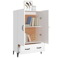 This practical and decorative highboard will introduce an air of unique charm to your existing interior. Premium material: The engineered wood is of exceptional quality with smooth surface and also features strength, stability and resistance to moisture.Sturdy frame: The wooden frame of the sideboard ensures sturdiness and stability.Ample storage: This side cabinet has 2 doors and 1 drawer, makings it easy to keep your daily supplies well organised. Warning:In order to prevent overturning, this product must be used with the wall attachment device provided.