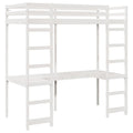 This Wooden Loft Bed Frame exudes a modern vibe, showcasing a blend of functionality and style. Designed for efficient space use, it's perfect for anyone who wants to combine comfort and practicality in their bedroom setup. The structure is crafted from solid pine wood, ensuring reliability and lasting appeal. Its elevated design provides ample space underneath, suitable for additional furniture or storage solutions, making it an ideal option for small rooms or shared spaces. The loft bed frame not only focuses on minimalistic aesthetics but also maximizes utility, making it a versatile addition to any modern home. Solid Pine Construction: Crafted from high-quality solid pine wood, this loft bed frame offers robust and reliable support. The natural wood grain provides an aesthetically pleasing texture and ensures the bed stands up well to daily use, offering both durability and long-lasting appeal. This choice of material guarantees a sturdy foundation for your bedroom needs. Integrated Desk: Designed to maximize floor space, the loft bed comes with a built-in desk underneath. This clever inclusion makes it perfect for creating a designated study or work area, giving you the flexibility to use the room environment effectively. It's ideally suited for students or those working from home who require a functional yet compact setup. Enhanced Safety Features: Safety is prioritized with guardrails that surround the top bunk. These barriers protect sleepers from accidental falls, providing peace of mind especially for younger users while maintaining a sleek and tidy appearance. Functional Ladder Access: The integrated ladder offers seamless access to the top bunk. Its design allows for easy, comfortable climbing and integrates harmoniously with the bed's overall aesthetic while ensuring stability and ease of use. Indoor Use Design: Exclusively designed for indoor settings, this bed frame is perfect for bedrooms, guest rooms, or creative living spaces. Its versatile styling and intuitive features cater to both adults and children, making it a family-friendly option.