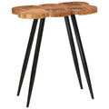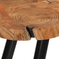 Invite your friends or family for a fizzy drink or afternoon tea around this log bar table. Solid acacia wood tabletop: The tabletop is made of solid acacia wood. Solid acacia wood is a beautiful natural material. Acacia wood is a tropical hardwood, which is dense, sturdy, and durable.Iron legs: The iron legs add an industrial style to your interior while ensuring stability.Timeless design: The tabletop is treated in a distinctive style to keep the wood grain visible. The natural cracks and trunk shape give your room a rustic charm. The open design under the table allows you to stretch your legs freely. Good to know:Colours and grains vary per furniture item, making each piece unique. The delivery is random, ensuring the exclusivity and individuality of your product.