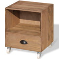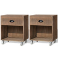 This wooden nightstand set, consisting of 2 pieces, will make a practical as well as decorative addition to your bedroom. It can also be used as a telephone stand, a side cabinet, a bedside cabinet or an end table. The sturdy top is ideal for displaying photo frames, an alarm clock, a reading lamp, books, etc. The drawer and shelf for each provide ample space for keeping all kinds of smaller items organised and within reach. With four castors for each, these nightstands can easily be moved around. They can be assembled in 2 ways, with the drawer at the top or with the drawer at the bottom. Thanks to the high-quality solid wood material, these nightstands are very sturdy and durable. Assembly is really easy. Note: wood is a natural product and can show imperfections.