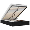 This ottoman bed frame seamlessly blends modern aesthetics with practical functionality, offering you both a storage solution and a comfortable sleep experience. Soft and durable material: Polyester fabric offers a combination of softness, breathability, and durability, ensuring you experience ultimate comfort and cosiness.Ample under-bed storage: This bed frame features spacious storage underneath, maximising your space without requiring additional floor area. It provides ample room for storing items such as extra duvets, pillows, and seasonal clothing, making it ideal for smaller or more confined spaces.Convenient lift mechanism: The integrated hydraulic lift mechanism provides easy access to your belongings stored under the bed. With just a simple pull of the handle, the slat base lifts smoothly, allowing you to retrieve your items quickly and effortlessly.No box spring required: The bed frame includes a slatted base that provides excellent support and breathability for your mattress, eliminating the need for a box spring. Good to know:A mattress is not included with this bed. We do offer a various selection of mattresses. You can check our shop for a matching mattress.