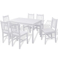 This wooden dining set, consisting of a table and six chairs, has an understated, timeless design and will add a touch of style to your interior. Made of high-quality pinewood, the dining table and chairs are very stable and durable. This dining set is easy to clean with just a damp cloth. Assembly is really easy. Delivery includes 1 table and 6 chairs.
