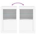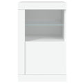 Featuring a trendy yet practical design, this side cabinet with LED lights will definitely become a focal point of your room. Durable material: The engineered wood is of exceptional quality with smooth surface and also features strength, stability and resistance to moisture.RGB LED lights: The cupboard is equipped with vibrant RGB LED lights. With various customisable menus, you can effortlessly change the colour of the lights and even set them to adjust automatically. These LED lights not only enhance the contemporary look of the cabinet but also add to its trendy appeal.Ample storage space: The storage cabinet features a glass shelf and a concealed storage area behind its doors, offering plenty of space to keep your everyday items neatly arranged and easily accessible.Flexible door: You can install the door either on the left side or right side based on your own needs. Good to know:The product has a USB connector that requires a certified 5V USB power source (not included). Warning:In order to prevent overturning, this product must be used with the wall attachment device provided.