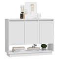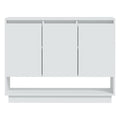 This sideboard makes a perfect decorative as well as practical addition to your existing decor. This side cabinet features a sturdy and durable construction. With 3 doors and the bottom open compartment, the cabinet provides ample storage space for books, multimedia appliances and other items. The sturdy top is ideal for displaying decorative objects, photo frames, or potted plants.
