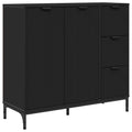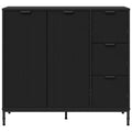 This sideboard, blending modern style with practical function, is a go-to storage solution for any contemporary home. Its simple lines and clean design make it suitable for kitchens, living, and dining rooms, creating an aesthetic that is both chic and efficient. The streamlined structure allows for easy coordination with existing decor while bringing a touch of sophistication to any setting. As a functional addition, this piece supports decorative accents on top, such as vases or picture frames, while the interior offers extensive storage space for organization. Engineered Wood Construction The sideboard is crafted from high-quality engineered wood that provides an attractive look similar to natural wood. This material is noted for its wear resistance, which helps maintain the sideboard's appearance over time. Engineered wood is also lightweight, making it easier to move as needed, and its smooth surface simplifies cleaning and polishing. Functional Storage Features Featuring board shelves and traditional pull drawers, this sideboard offers convenient, diverse storage options. The hinge doors open to reveal compartments that can house larger items, while smaller essentials fit neatly inside the drawers. This thoughtful design allows for organized storage and easy access to items kept within. Modern Aesthetic Appeal The point of convergence between style and functionality, this sideboard resonates with sleek modern aesthetics. Its clean lines and minimalistic design perfectly capture the modern interior decor style, making it an ideal centerpiece for any room that desires elegant simplicity. Versatile Utility With ample space and adaptability, this piece is a multipurpose unit suitable for diverse settings. Whether employed as a dining buffet or as a storage hub in living spaces, its versatility shines through. The top can serve as a display surface for art pieces or lamps, enhancing its functionality. Practical Care Instructions To ensure safety and preserve its condition, secure the sideboard to the wall using the provided attachment device. Careful assembly is necessary, requiring two people and the use of standard home tools like a screwdriver and drill.