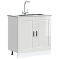 This sink base cabinet optimises your kitchen space, providing ample storage space for your personal belongings! Stable and durable material: Engineered wood is a durable and stable material with a smooth surface that is resistant to moisture, warping, and splitting, making it a reliable choice for a variety of projects.Ample storage space: The sink base cabinet offers sufficient space to store bowls, plates, pots, and other kitchen appliances.Practical doors: The door helps maintain a clean and organised space by concealing kitchen appliances and clutter behind them.Adjustable feet: The feet of this sink base cabinet can be adjusted in height to suit your kitchen layout.Easy to maintain: Thanks to its smooth surface, this sink base cabinet is easy to clean with a damp cloth and requires less maintenance. Warning:To prevent it from tipping over, this product must be used with the provided wall attachment device. Good to know:Screw(s) and plug(s) for inside the wall are not included. Seek and use screw(s) and plug(s) suitable for your walls. If you are uncertain, seek professional advice. Read and follow each step of the instruction carefully.