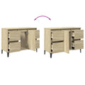This sink cabinet is meant to be a great addition to your bathroom, giving it a tidy and striking appearance! Long-lasting material: The engineered wood is of exceptional quality with a smooth surface and also features strength, stability, and resistance to moisture.Ample storage space: The bathroom sink cabinet features 4 drawers and 1 compartment with a door, offering various storage options and extra space to store items in your bathroom. The top of the bathroom cabinet is ideal for placing the sink.Sturdy structure: The metal feet add a calm style to your interior while ensuring stability.Easy to maintain: Thanks to its smooth surface, the cabinet is easy to clean with a damp cloth and requires less maintenance. Warning:To prevent it from tipping over, this product must be used with the provided wall attachment device. Good to know:The sink is not included.