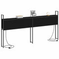vidaXL Storage Headboard with Charging Station Black oak 200 cm