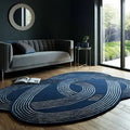 * This oval-shaped rug features a link loop design, adding a touch of modern style to any room with its intricate pattern.