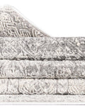 * The gray color scheme of the rug allows it to blend seamlessly with a variety of decorating styles, from contemporary to traditional.