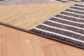 * The geometric pattern on the rug is intricately designed with a spire motif, adding visual interest and depth to the overall design.