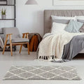 * The Myshaggy Moroccan Design Rug features a traditional Moroccan-inspired pattern with intricate details and a grey color scheme to add a touch of elegance to any room.