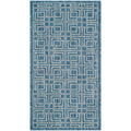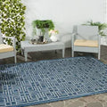* This area rug features a stylish navy and grey color scheme, adding a touch of sophistication and elegance to any room or outdoor space.