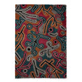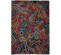* The rug's abstract pattern is created using a combination of vibrant colors and subtle shading, giving it a sense of depth and visual interest.