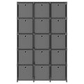 Our display shelf with 15 boxes adds a modern look to your existing home decor. The storage rack is made of fabric and steel frame, making it strong and stable. This free-standing shelf has 15 open compartments, and each compartment includes a fabric box, providing ample storage space for your items and keeping your room tidy. Additionally, the home decor shelf also serves as the perfect place to display books, collectables, photos, awards and small potted plants, etc. when you remove the boxes. Thanks to the lightweight construction, this home organiser also is easy to move around.
