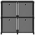 Our display shelf with 4 boxes adds a modern look to your existing home decor. The storage rack is made of fabric and steel frame, making it strong and stable. This free-standing shelf has 4 open compartments, and each compartment includes a fabric box, providing ample storage space for your items and keeping your room tidy. Additionally, the home decor shelf also serves as the perfect place to display books, collectables, photos, awards and small potted plants, etc. when you remove the boxes. Thanks to the lightweight construction, this home organiser also is easy to move around.