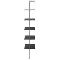 Create an extra storage area in a limited space with this 5-tier leaning shelf! Strong steel construction: The storage shelf has a strong steel frame, which ensures sturdiness and stability.Ample storage space: The bookcase takes little space while offering ample space to store your books, plants, picture frames and any additional stuff.Wide application: The practical shelf is perfectly suitable for your home and office, including your living room, bathroom, bedroom, balcony, etc.Leaning design: The bookshelf can be snuggly leaned against the wall. WARNING:To prevent overturning, this product must be used with the wall attachment device provided.Note:Each product comes with an assembly manual in the box for easy assembly.
