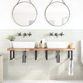 The wall mounted basin shelf securely attaches to the wall, providing an elegant and space-saving solution for your bathroom. Sturdy and long-lasting: This basin shelf is combined with a steel structure and a solid acacia wood top, making it sturdy, stable, and long-lasting.Space-saving: The floating basin shelf has ample space to store creams and small items. Thanks to the rectangular shape, you can hang towels or other things on the support to save space.Easy to use: The countertop comes undrilled to allow the basin to be mounted on the left, right, or in the centre, depending on your room's requirements. Thanks to the pre-drilled holes in the holder, it can be easily assembled with the tabletop and mounted on the wall.Wide applications: Thanks to its modern design, it provides additional space for various types of bathrooms. Good to know:Screws are not included, you can purchase the screws separately based on the information provided below.Wall attachment: 2 pcs M8 expansion screws per bracketWooden top: 2 pcs M5x18 screws (T=2) or 2 pcs M5x20 screws (T=2,5/4cm) per bracket