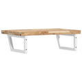 The wall mounted basin shelf securely attaches to the wall, providing an elegant and space-saving solution for your bathroom. Sturdy and long-lasting: This basin shelf is combined with a steel structure and a solid acacia wood top, making it sturdy, stable, and long-lasting.Space-saving: The floating basin shelf has ample space to store creams and small items. Thanks to the trapezium shape, you can hang towels or other things on the support to save space.Easy to use: The countertop comes undrilled to allow the basin to be mounted on the left, right, or in the centre, depending on your room's requirements. Thanks to the pre-drilled holes in the holder, it can be easily assembled with the tabletop and mounted on the wall.Wide applications: Thanks to its modern design, it provides additional space for various types of bathrooms. Good to know:Screws are not included, you can purchase the screws separately based on the information provided below.Wall attachment: 2 pcs M8 expansion screws per bracketWooden top: 2 pcs M5x18 screws (T=2) or 2 pcs M5x20 screws (T=2,5/4cm) per bracket