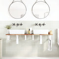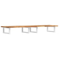 The wall mounted basin shelf securely attaches to the wall, providing an elegant and space-saving solution for your bathroom. Sturdy and long-lasting: This basin shelf is combined with a steel structure and a solid acacia wood top, making it sturdy, stable, and long-lasting.Space-saving: The floating basin shelf has ample space to store creams and small items. Thanks to the rectangular shape, you can hang towels or other things on the support to save space.Easy to use: The countertop comes undrilled to allow the basin to be mounted on the left, right, or in the centre, depending on your room's requirements. Thanks to the pre-drilled holes in the holder, it can be easily assembled with the tabletop and mounted on the wall.Wide applications: Thanks to its modern design, it provides additional space for various types of bathrooms. Good to know:Screws are not included, you can purchase the screws separately based on the information provided below.Wall attachment: 2 pcs M8 expansion screws per bracketWooden top: 2 pcs M5x18 screws (T=2) or 2 pcs M5x20 screws (T=2,5/4cm) per bracket