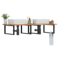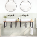 The wall mounted basin shelf securely attaches to the wall, providing an elegant and space-saving solution for your bathroom. Sturdy and long-lasting: This basin shelf is combined with a steel structure and a solid acacia wood top, making it sturdy, stable, and long-lasting.Space-saving: The floating basin shelf has ample space to store creams and small items. Thanks to the rectangular shape, you can hang towels or other things on the support to save space.Easy to use: The countertop comes undrilled to allow the basin to be mounted on the left, right, or in the centre, depending on your room's requirements. Thanks to the pre-drilled holes in the holder, it can be easily assembled with the tabletop and mounted on the wall.Wide applications: Thanks to its modern design, it provides additional space for various types of bathrooms. Good to know:Screws are not included, you can purchase the screws separately based on the information provided below.Wall attachment: 2 pcs M8 expansion screws per bracketWooden top: 2 pcs M5x18 screws (T=2) or 2 pcs M5x20 screws (T=2,5/4cm) per bracket