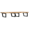 The wall mounted basin shelf securely attaches to the wall, providing an elegant and space-saving solution for your bathroom. Sturdy and long-lasting: This basin shelf is combined with a steel structure and a solid acacia wood top, making it sturdy, stable, and long-lasting.Space-saving: The floating basin shelf has ample space to store creams and small items. Thanks to the trapezium shape, you can hang towels or other things on the support to save space.Easy to use: The countertop comes undrilled to allow the basin to be mounted on the left, right, or in the centre, depending on your room's requirements. Thanks to the pre-drilled holes in the holder, it can be easily assembled with the tabletop and mounted on the wall.Wide applications: Thanks to its modern design, it provides additional space for various types of bathrooms. Good to know:Screws are not included, you can purchase the screws separately based on the information provided below.Wall attachment: 2 pcs M8 expansion screws per bracketWooden top: 2 pcs M5x18 screws (T=2) or 2 pcs M5x20 screws (T=2,5/4cm) per bracket