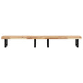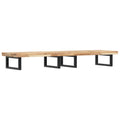 The wall mounted basin shelf securely attaches to the wall, providing an elegant and space-saving solution for your bathroom. Sturdy and long-lasting: This basin shelf is combined with a steel structure and a solid acacia wood top, making it sturdy, stable, and long-lasting.Space-saving: The floating basin shelf has ample space to store creams and small items. Thanks to the rectangular shape, you can hang towels or other things on the support to save space.Easy to use: The countertop comes undrilled to allow the basin to be mounted on the left, right, or in the centre, depending on your room's requirements. Thanks to the pre-drilled holes in the holder, it can be easily assembled with the tabletop and mounted on the wall.Wide applications: Thanks to its modern design, it provides additional space for various types of bathrooms. Good to know:Screws are not included, you can purchase the screws separately based on the information provided below.Wall attachment: 2 pcs M8 expansion screws per bracketWooden top: 2 pcs M5x18 screws (T=2) or 2 pcs M5x20 screws (T=2,5/4cm) per bracket