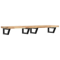The wall mounted basin shelf securely attaches to the wall, providing an elegant and space-saving solution for your bathroom. Sturdy and long-lasting: This basin shelf is combined with a steel structure and a solid acacia wood top, making it sturdy, stable, and long-lasting.Space-saving: The floating basin shelf has ample space to store creams and small items. Thanks to the trapezium shape, you can hang towels or other things on the support to save space.Easy to use: The countertop comes undrilled to allow the basin to be mounted on the left, right, or in the centre, depending on your room's requirements. Thanks to the pre-drilled holes in the holder, it can be easily assembled with the tabletop and mounted on the wall.Wide applications: Thanks to its modern design, it provides additional space for various types of bathrooms. Good to know:Screws are not included, you can purchase the screws separately based on the information provided below.Wall attachment: 2 pcs M8 expansion screws per bracketWooden top: 2 pcs M5x18 screws (T=2) or 2 pcs M5x20 screws (T=2,5/4cm) per bracket