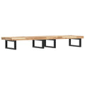 The wall mounted basin shelf securely attaches to the wall, providing an elegant and space-saving solution for your bathroom. Sturdy and long-lasting: This basin shelf is combined with a steel structure and a solid acacia wood top, making it sturdy, stable, and long-lasting.Space-saving: The floating basin shelf has ample space to store creams and small items. Thanks to the rectangular shape, you can hang towels or other things on the support to save space.Easy to use: The countertop comes undrilled to allow the basin to be mounted on the left, right, or in the centre, depending on your room's requirements. Thanks to the pre-drilled holes in the holder, it can be easily assembled with the tabletop and mounted on the wall.Wide applications: Thanks to its modern design, it provides additional space for various types of bathrooms. Good to know:Screws are not included, you can purchase the screws separately based on the information provided below.Wall attachment: 2 pcs M8 expansion screws per bracketWooden top: 2 pcs M5x18 screws (T=2) or 2 pcs M5x20 screws (T=2,5/4cm) per bracket