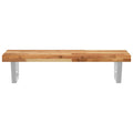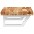 The wall mounted basin shelf securely attaches to the wall, providing an elegant and space-saving solution for your bathroom. Sturdy and long-lasting: This basin shelf is combined with a steel structure and a solid acacia wood top, making it sturdy, stable, and long-lasting.Space-saving: The floating basin shelf has ample space to store creams and small items. Thanks to the trapezium shape, you can hang towels or other things on the support to save space.Easy to use: The countertop comes undrilled to allow the basin to be mounted on the left, right, or in the centre, depending on your room's requirements. Thanks to the pre-drilled holes in the holder, it can be easily assembled with the tabletop and mounted on the wall.Wide applications: Thanks to its modern design, it provides additional space for various types of bathrooms. Good to know:Screws are not included, you can purchase the screws separately based on the information provided below.Wall attachment: 2 pcs M8 expansion screws per bracketWooden top: 2 pcs M5x18 screws (T=2) or 2 pcs M5x20 screws (T=2,5/4cm) per bracket