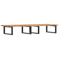 The wall mounted basin shelf securely attaches to the wall, providing an elegant and space-saving solution for your bathroom. Sturdy and long-lasting: This basin shelf is combined with a steel structure and a solid acacia wood top, making it sturdy, stable, and long-lasting.Space-saving: The floating basin shelf has ample space to store creams and small items. Thanks to the rectangular shape, you can hang towels or other things on the support to save space.Easy to use: The countertop comes undrilled to allow the basin to be mounted on the left, right, or in the centre, depending on your room's requirements. Thanks to the pre-drilled holes in the holder, it can be easily assembled with the tabletop and mounted on the wall.Wide applications: Thanks to its modern design, it provides additional space for various types of bathrooms. Good to know:Screws are not included, you can purchase the screws separately based on the information provided below.Wall attachment: 2 pcs M8 expansion screws per bracketWooden top: 2 pcs M5x18 screws (T=2) or 2 pcs M5x20 screws (T=2,5/4cm) per bracket