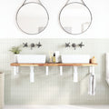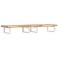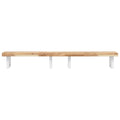 The wall mounted basin shelf securely attaches to the wall, providing an elegant and space-saving solution for your bathroom. Sturdy and long-lasting: This basin shelf is combined with a steel structure and a solid acacia wood top, making it sturdy, stable, and long-lasting.Space-saving: The floating basin shelf has ample space to store creams and small items. Thanks to the rectangular shape, you can hang towels or other things on the support to save space.Easy to use: The countertop comes undrilled to allow the basin to be mounted on the left, right, or in the centre, depending on your room's requirements. Thanks to the pre-drilled holes in the holder, it can be easily assembled with the tabletop and mounted on the wall.Wide applications: Thanks to its modern design, it provides additional space for various types of bathrooms. Good to know:Screws are not included, you can purchase the screws separately based on the information provided below.Wall attachment: 2 pcs M8 expansion screws per bracketWooden top: 2 pcs M5x18 screws (T=2) or 2 pcs M5x20 screws (T=2,5/4cm) per bracket