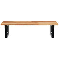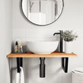 The wall mounted basin shelf securely attaches to the wall, providing an elegant and space-saving solution for your bathroom. Sturdy and long-lasting: This basin shelf is combined with a steel structure and a solid acacia wood top, making it sturdy, stable, and long-lasting.Space-saving: The floating basin shelf has ample space to store creams and small items. Thanks to the trapezium shape, you can hang towels or other things on the support to save space.Easy to use: The countertop comes undrilled to allow the basin to be mounted on the left, right, or in the centre, depending on your room's requirements. Thanks to the pre-drilled holes in the holder, it can be easily assembled with the tabletop and mounted on the wall.Wide applications: Thanks to its modern design, it provides additional space for various types of bathrooms. Good to know:Screws are not included, you can purchase the screws separately based on the information provided below.Wall attachment: 2 pcs M8 expansion screws per bracketWooden top: 2 pcs M5x18 screws (T=2) or 2 pcs M5x20 screws (T=2,5/4cm) per bracket
