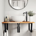 The wall mounted basin shelf securely attaches to the wall, providing an elegant and space-saving solution for your bathroom. Sturdy and long-lasting: This basin shelf is combined with a steel structure and a solid acacia wood top, making it sturdy, stable, and long-lasting.Space-saving: The floating basin shelf has ample space to store creams and small items. Thanks to the trapezium shape, you can hang towels or other things on the support to save space.Easy to use: The countertop comes undrilled to allow the basin to be mounted on the left, right, or in the centre, depending on your room's requirements. Thanks to the pre-drilled holes in the holder, it can be easily assembled with the tabletop and mounted on the wall.Wide applications: Thanks to its modern design, it provides additional space for various types of bathrooms. Good to know:Screws are not included, you can purchase the screws separately based on the information provided below.Wall attachment: 2 pcs M8 expansion screws per bracketWooden top: 2 pcs M5x18 screws (T=2) or 2 pcs M5x20 screws (T=2,5/4cm) per bracket