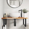 The wall mounted basin shelf securely attaches to the wall, providing an elegant and space-saving solution for your bathroom. Sturdy and long-lasting: This basin shelf is combined with a steel structure and a solid acacia wood top, making it sturdy, stable, and long-lasting.Space-saving: The floating basin shelf has ample space to store creams and small items. Thanks to the rectangular shape, you can hang towels or other things on the support to save space.Easy to use: The countertop comes undrilled to allow the basin to be mounted on the left, right, or in the centre, depending on your room's requirements. Thanks to the pre-drilled holes in the holder, it can be easily assembled with the tabletop and mounted on the wall.Wide applications: Thanks to its modern design, it provides additional space for various types of bathrooms. Good to know:Screws are not included, you can purchase the screws separately based on the information provided below.Wall attachment: 2 pcs M8 expansion screws per bracketWooden top: 2 pcs M5x18 screws (T=2) or 2 pcs M5x20 screws (T=2,5/4cm) per bracket