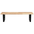 The wall mounted basin shelf securely attaches to the wall, providing an elegant and space-saving solution for your bathroom. Sturdy and long-lasting: This basin shelf is combined with a steel structure and a solid acacia wood top, making it sturdy, stable, and long-lasting.Space-saving: The floating basin shelf has ample space to store creams and small items. Thanks to the trapezium shape, you can hang towels or other things on the support to save space.Easy to use: The countertop comes undrilled to allow the basin to be mounted on the left, right, or in the centre, depending on your room's requirements. Thanks to the pre-drilled holes in the holder, it can be easily assembled with the tabletop and mounted on the wall.Wide applications: Thanks to its modern design, it provides additional space for various types of bathrooms. Good to know:Screws are not included, you can purchase the screws separately based on the information provided below.Wall attachment: 2 pcs M8 expansion screws per bracketWooden top: 2 pcs M5x18 screws (T=2) or 2 pcs M5x20 screws (T=2,5/4cm) per bracket