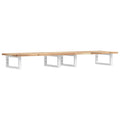 The wall mounted basin shelf securely attaches to the wall, providing an elegant and space-saving solution for your bathroom. Sturdy and long-lasting: This basin shelf is combined with a steel structure and a solid acacia wood top, making it sturdy, stable, and long-lasting.Space-saving: The floating basin shelf has ample space to store creams and small items. Thanks to the rectangular shape, you can hang towels or other things on the support to save space.Easy to use: The countertop comes undrilled to allow the basin to be mounted on the left, right, or in the centre, depending on your room's requirements. Thanks to the pre-drilled holes in the holder, it can be easily assembled with the tabletop and mounted on the wall.Wide applications: Thanks to its modern design, it provides additional space for various types of bathrooms. Good to know:Screws are not included, you can purchase the screws separately based on the information provided below.Wall attachment: 2 pcs M8 expansion screws per bracketWooden top: 2 pcs M5x18 screws (T=2) or 2 pcs M5x20 screws (T=2,5/4cm) per bracket