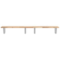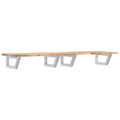 The wall mounted basin shelf securely attaches to the wall, providing an elegant and space-saving solution for your bathroom. Sturdy and long-lasting: This basin shelf is combined with a steel structure and a solid acacia wood top, making it sturdy, stable, and long-lasting.Space-saving: The floating basin shelf has ample space to store creams and small items. Thanks to the trapezium shape, you can hang towels or other things on the support to save space.Easy to use: The countertop comes undrilled to allow the basin to be mounted on the left, right, or in the centre, depending on your room's requirements. Thanks to the pre-drilled holes in the holder, it can be easily assembled with the tabletop and mounted on the wall.Wide applications: Thanks to its modern design, it provides additional space for various types of bathrooms. Good to know:Screws are not included, you can purchase the screws separately based on the information provided below.Wall attachment: 2 pcs M8 expansion screws per bracketWooden top: 2 pcs M5x18 screws (T=2) or 2 pcs M5x20 screws (T=2,5/4cm) per bracket