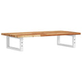 The wall mounted basin shelf securely attaches to the wall, providing an elegant and space-saving solution for your bathroom. Sturdy and long-lasting: This basin shelf is combined with a steel structure and a solid acacia wood top, making it sturdy, stable, and long-lasting.Space-saving: The floating basin shelf has ample space to store creams and small items. Thanks to the rectangular shape, you can hang towels or other things on the support to save space.Easy to use: The countertop comes undrilled to allow the basin to be mounted on the left, right, or in the centre, depending on your room's requirements. Thanks to the pre-drilled holes in the holder, it can be easily assembled with the tabletop and mounted on the wall.Wide applications: Thanks to its modern design, it provides additional space for various types of bathrooms. Good to know:Screws are not included, you can purchase the screws separately based on the information provided below.Wall attachment: 2 pcs M8 expansion screws per bracketWooden top: 2 pcs M5x18 screws (T=2) or 2 pcs M5x20 screws (T=2,5/4cm) per bracket
