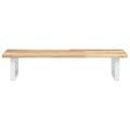 The wall mounted basin shelf securely attaches to the wall, providing an elegant and space-saving solution for your bathroom. Sturdy and long-lasting: This basin shelf is combined with a steel structure and a solid acacia wood top, making it sturdy, stable, and long-lasting.Space-saving: The floating basin shelf has ample space to store creams and small items. Thanks to the rectangular shape, you can hang towels or other things on the support to save space.Easy to use: The countertop comes undrilled to allow the basin to be mounted on the left, right, or in the centre, depending on your room's requirements. Thanks to the pre-drilled holes in the holder, it can be easily assembled with the tabletop and mounted on the wall.Wide applications: Thanks to its modern design, it provides additional space for various types of bathrooms. Good to know:Screws are not included, you can purchase the screws separately based on the information provided below.Wall attachment: 2 pcs M8 expansion screws per bracketWooden top: 2 pcs M5x18 screws (T=2) or 2 pcs M5x20 screws (T=2,5/4cm) per bracket