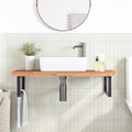 The wall mounted basin shelf securely attaches to the wall, providing an elegant and space-saving solution for your bathroom. Sturdy and long-lasting: This basin shelf is combined with a steel structure and a solid beech wood top, making it sturdy, stable, and long-lasting. Space-saving: The floating basin shelf has ample space to store creams and small items. Thanks to the rectangular shape, you can hang towels or other things on the support to save space. Easy to use: The countertop comes undrilled to allow the basin to be mounted on the left, right, or in the centre, depending on your room's requirements. Thanks to the pre-drilled holes in the holder, it can be easily assembled with the tabletop and mounted on the wall. Wide applications: Thanks to its modern design, it provides additional space for various types of bathrooms. Good to know:Screws are not included, you can purchase the screws separately based on the information provided below. Wall attachment: 2 pcs M8 expansion screws per bracket Wooden top: 2 pcs M5x18 screws (T=2) or 2 pcs M5x20 screws (T=2,5/4cm) per bracket