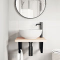 The wall mounted basin shelf securely attaches to the wall, providing an elegant and space-saving solution for your bathroom. Sturdy and long-lasting: This basin shelf is combined with a steel structure and a solid beech wood top, making it sturdy, stable, and long-lasting. Space-saving: The floating basin shelf has ample space to store creams and small items. Thanks to the trapezium shape, you can hang towels or other things on the support to save space. Easy to use: The countertop comes undrilled to allow the basin to be mounted on the left, right, or in the centre, depending on your room's requirements. Thanks to the pre-drilled holes in the holder, it can be easily assembled with the tabletop and mounted on the wall. Wide applications: Thanks to its modern design, it provides additional space for various types of bathrooms. Good to know:Screws are not included, you can purchase the screws separately based on the information provided below. Wall attachment: 2 pcs M8 expansion screws per bracket Wooden top: 2 pcs M5x18 screws (T=2) or 2 pcs M5x20 screws (T=2,5/4cm) per bracket