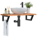 The wall mounted basin shelf securely attaches to the wall, providing an elegant and space-saving solution for your bathroom. Sturdy and long-lasting: This basin shelf is combined with a steel structure and a solid beech wood top, making it sturdy, stable, and long-lasting. Space-saving: The floating basin shelf has ample space to store creams and small items. Thanks to the trapezium shape, you can hang towels or other things on the support to save space. Easy to use: The countertop comes undrilled to allow the basin to be mounted on the left, right, or in the centre, depending on your room's requirements. Thanks to the pre-drilled holes in the holder, it can be easily assembled with the tabletop and mounted on the wall. Wide applications: Thanks to its modern design, it provides additional space for various types of bathrooms. Good to know:Screws are not included, you can purchase the screws separately based on the information provided below. Wall attachment: 2 pcs M8 expansion screws per bracket Wooden top: 2 pcs M5x18 screws (T=2) or 2 pcs M5x20 screws (T=2,5/4cm) per bracket